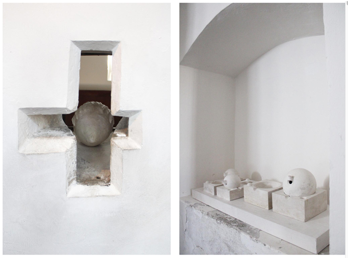 Niet zo lang geleden presenteerde zij, tegelijk met een performance, in de Heilige Geest Kapel van De Grote of St. Bavokerk te Haarlem haar laatste sculpturen. Heel anders dan het macho-geweld in Teylers Museum kreeg het zuivere wit een andere betekenis. In de nissen van de kleine ruimte stonden haar objecten verscholen opgesteld. Heel enigmatisch, geheimzinnig.