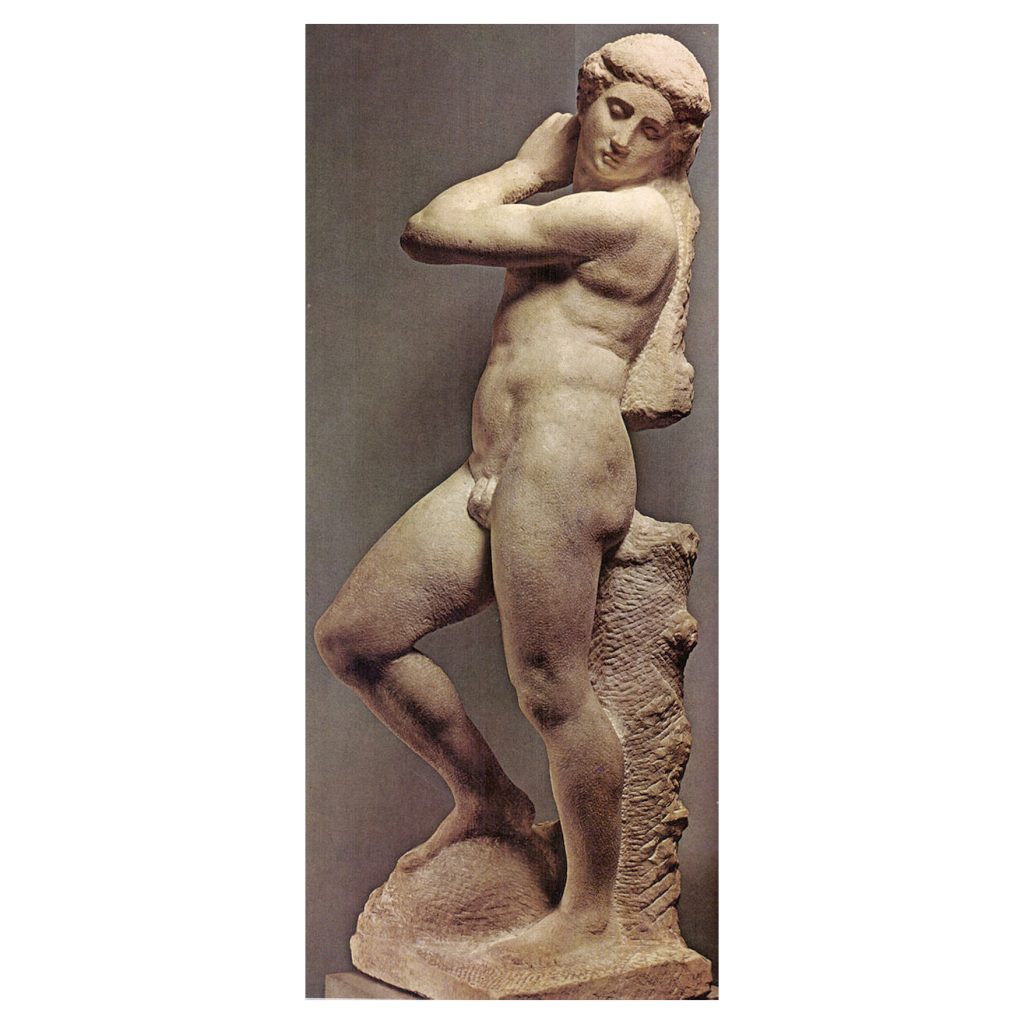 In Teylers Museum te Haarlem worden na bijna 15 jaar alle tekeningen van Michelangelo in het bezit van het museum opnieuw tentoongesteld onder de titel ‘De mannen van Michelangelo’. Deze 22 bladen behoren tot de mooiste tekeningen die hij gemaakt heeft. Het zijn merendeels studies van het mannelijke lichaam en getekend naar naaktmodellen. De anatomie gaf hij weer in uitdagende en expressieve houdingen. Het genie van Michelangelo werd al snel door zijn leermeesters herkend toen hij als jochie beelden uit de klassieke oudheid imiteerde. Zij vroegen hem om de perfectie die hij nastreefde, een beetje pootje te lichten, want aangetast verkochten de Klassieken beter. Op de tentoonstelling staat zo’n half-voltooid beeld van een jongeling in zuiver wit marmer heel mooi te wezen.